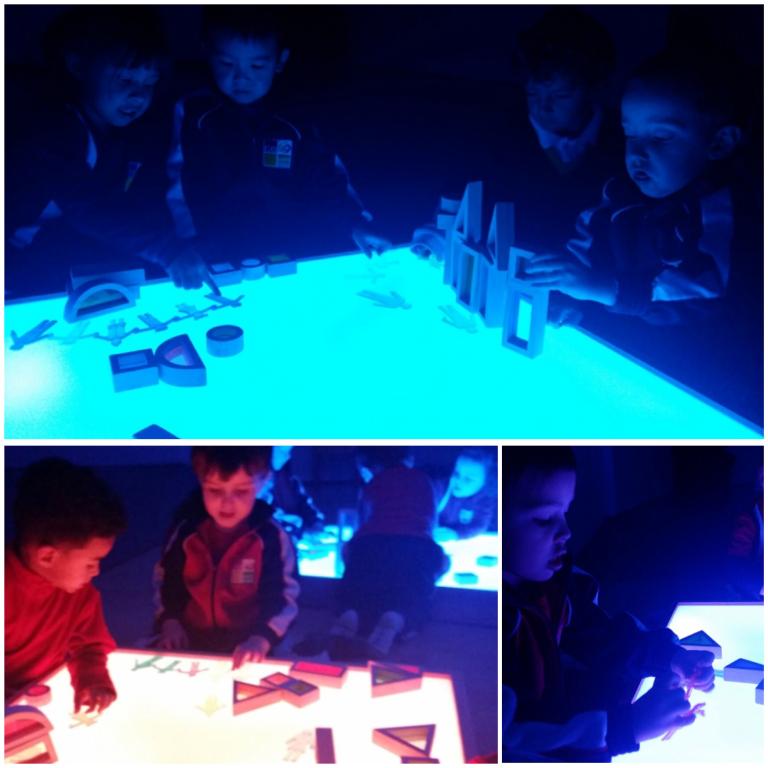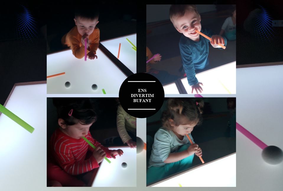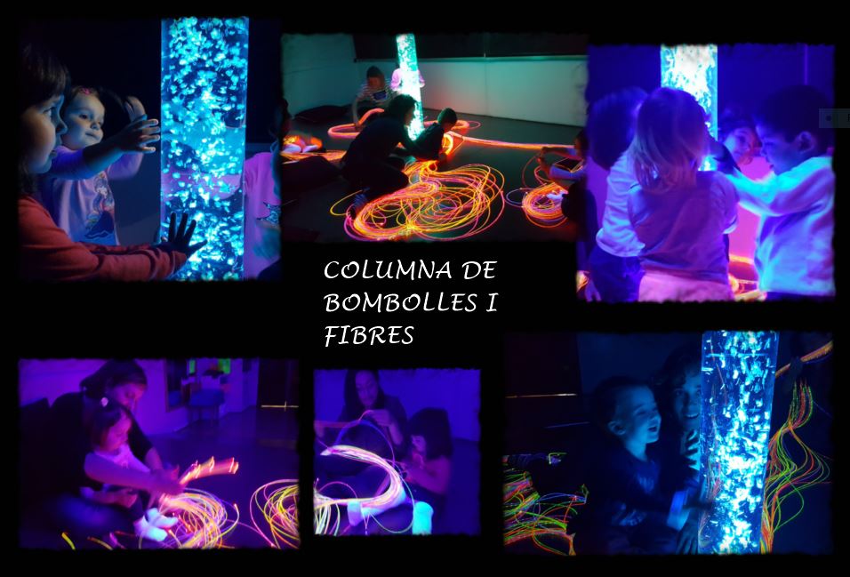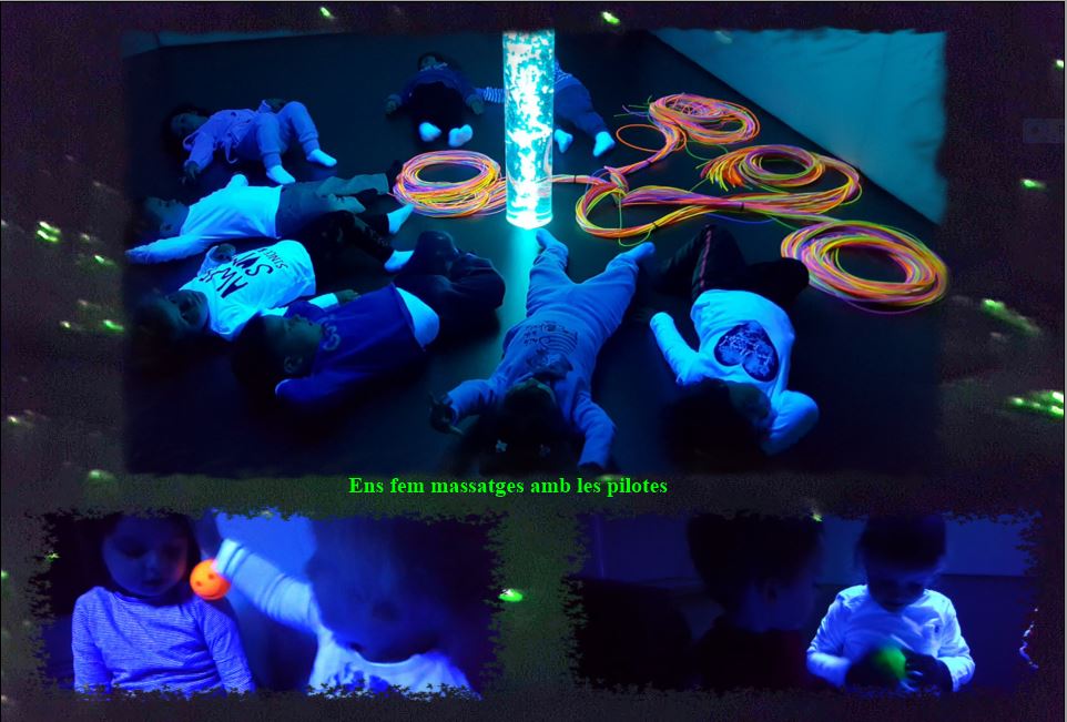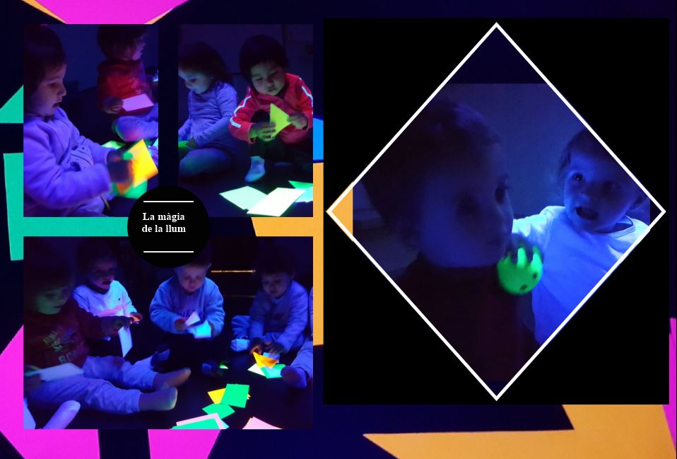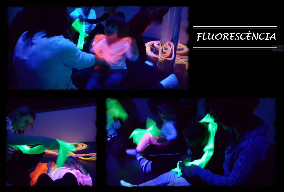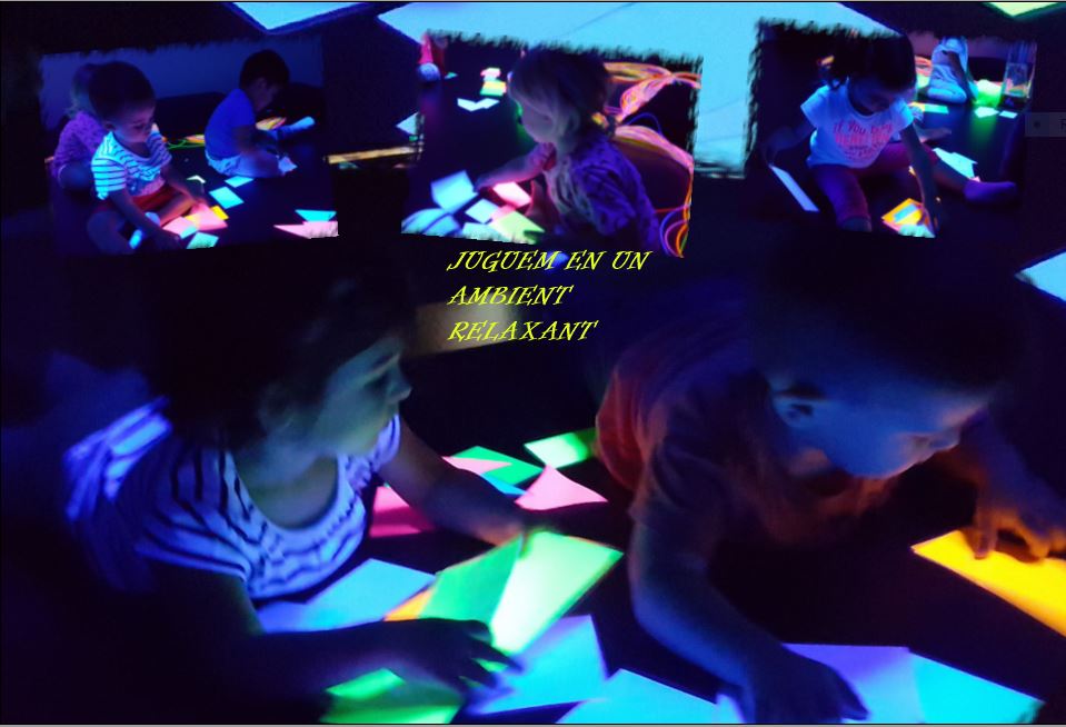 Setmana darrera setmana podem gaudir d’una estimulació multisensorial, experimentant amb diversos materials i fent nous descobriments en un entorn agradable i tranquil. Cada sessió és una gran sorpresa per anar aprenent a través del joc, a més a més de les bombolles, fibres òptiques, massatges amb pilotes... aquesta vegada hem tingut al nostre abast diferents formes geomètriques fluorescents amb les quals hem pogut construir: cases, ninos, cotxes...