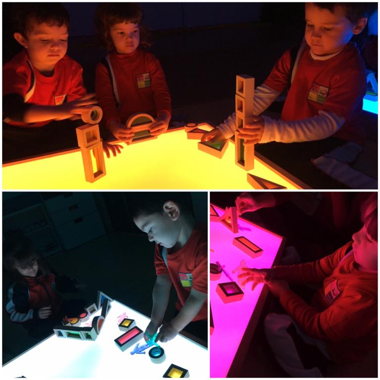 Tots plegats hem fet diferents construccions damunt la llum de les taules creant diferents històries on un cop més, ens fem protagonistes del nostre aprenentatge influint de forma positiva en cadascú de nosaltres.